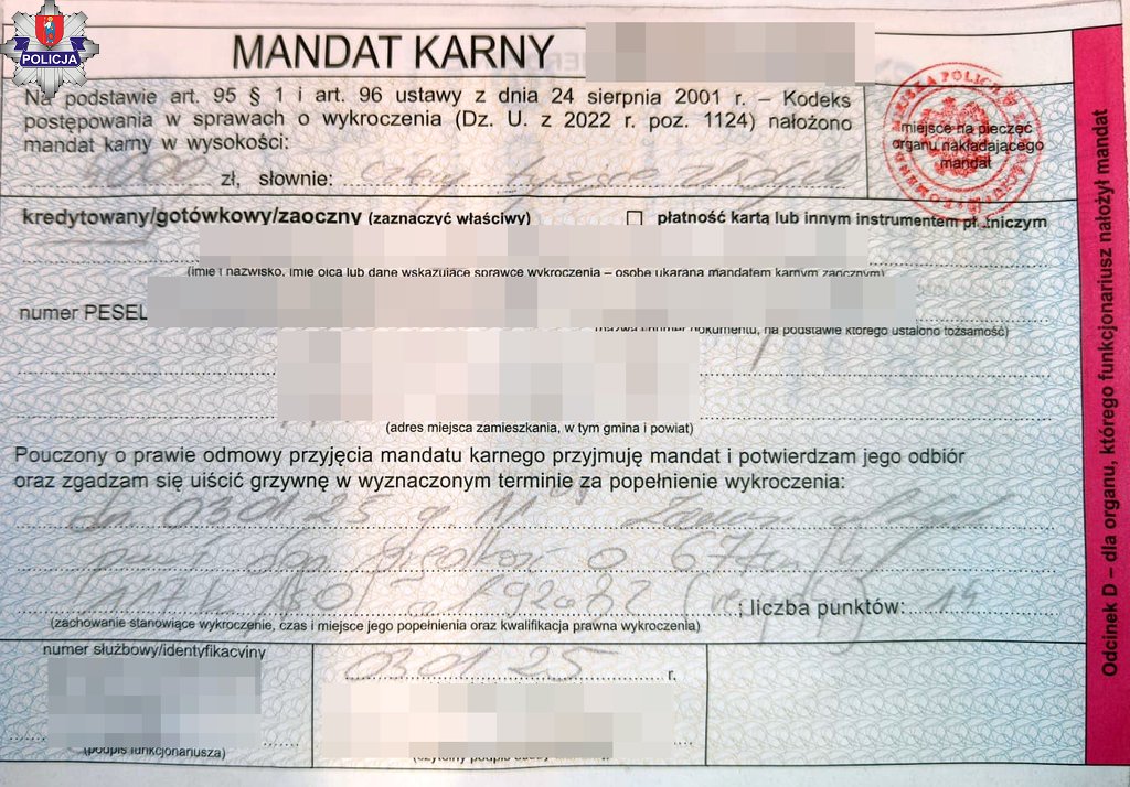 W sobotę, 3 stycznia kilka minut po godzinie 11:00 policjanci zamojskiego ruchu drogowego w Zamościu na ulicy Lipskiej, dokonywali pomiaru prędkości. Uwagę policjantów zwrócił kierujący pojazdem marki Audi, który w obszarze zabudowanym jechał z prędkością 117 km/h. Funkcjonariusze zatrzymali kierującego do kontroli. Za kierownicą samochodu siedział 30-letni mieszkaniec powiatu zamojskiego.